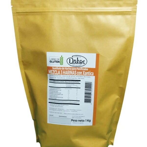 MEZCLA 3 HARINAS C/ XANTICA S/GLUTEN Dakos 1Kg