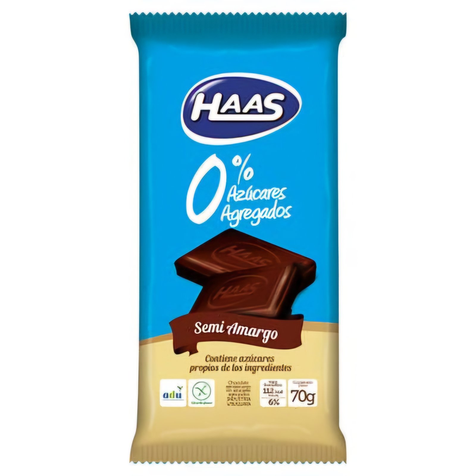 CHOCOLATE SEMI AMARGO SIN AZÚCAR Haas 70g