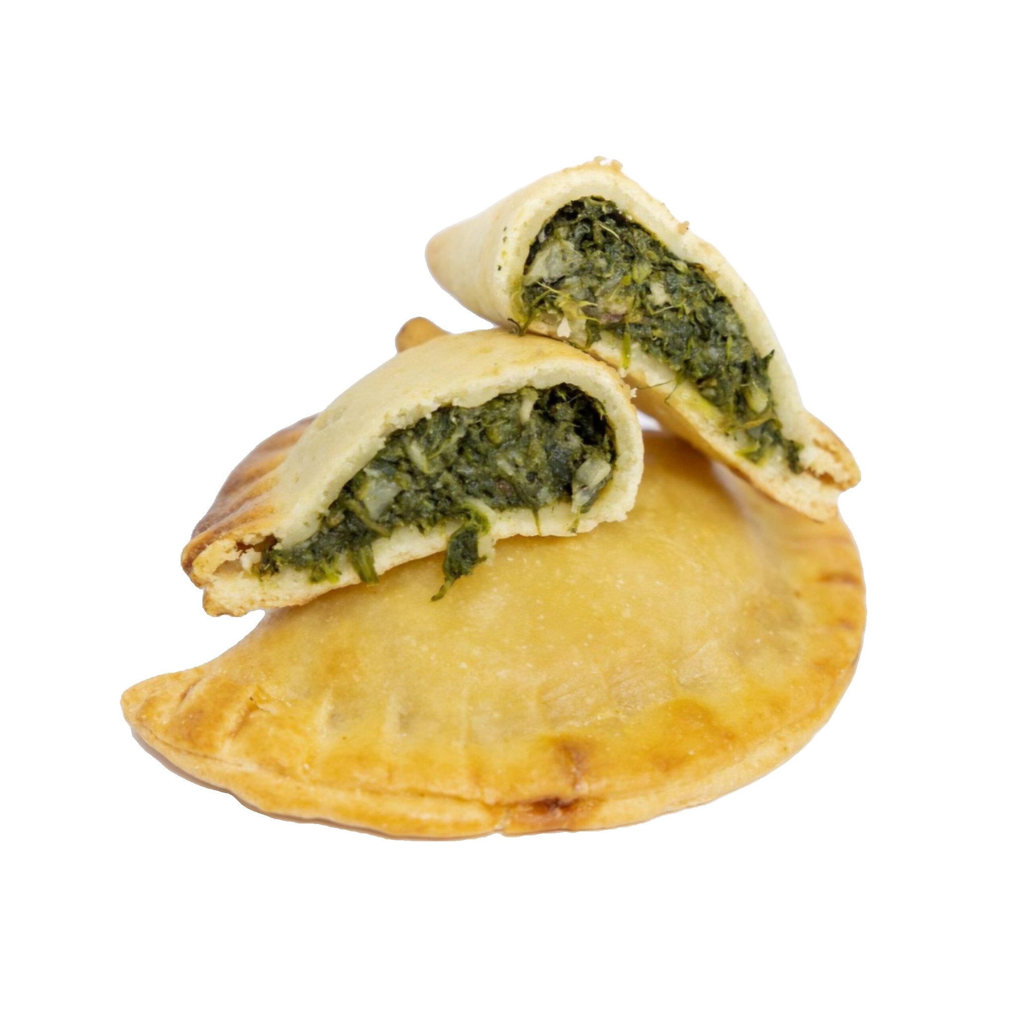 Empanadas de espinaca SIN GLUTEN con cebolla salteada en aceite de oliva. Masa especial, sin lácteos ni huevo.
