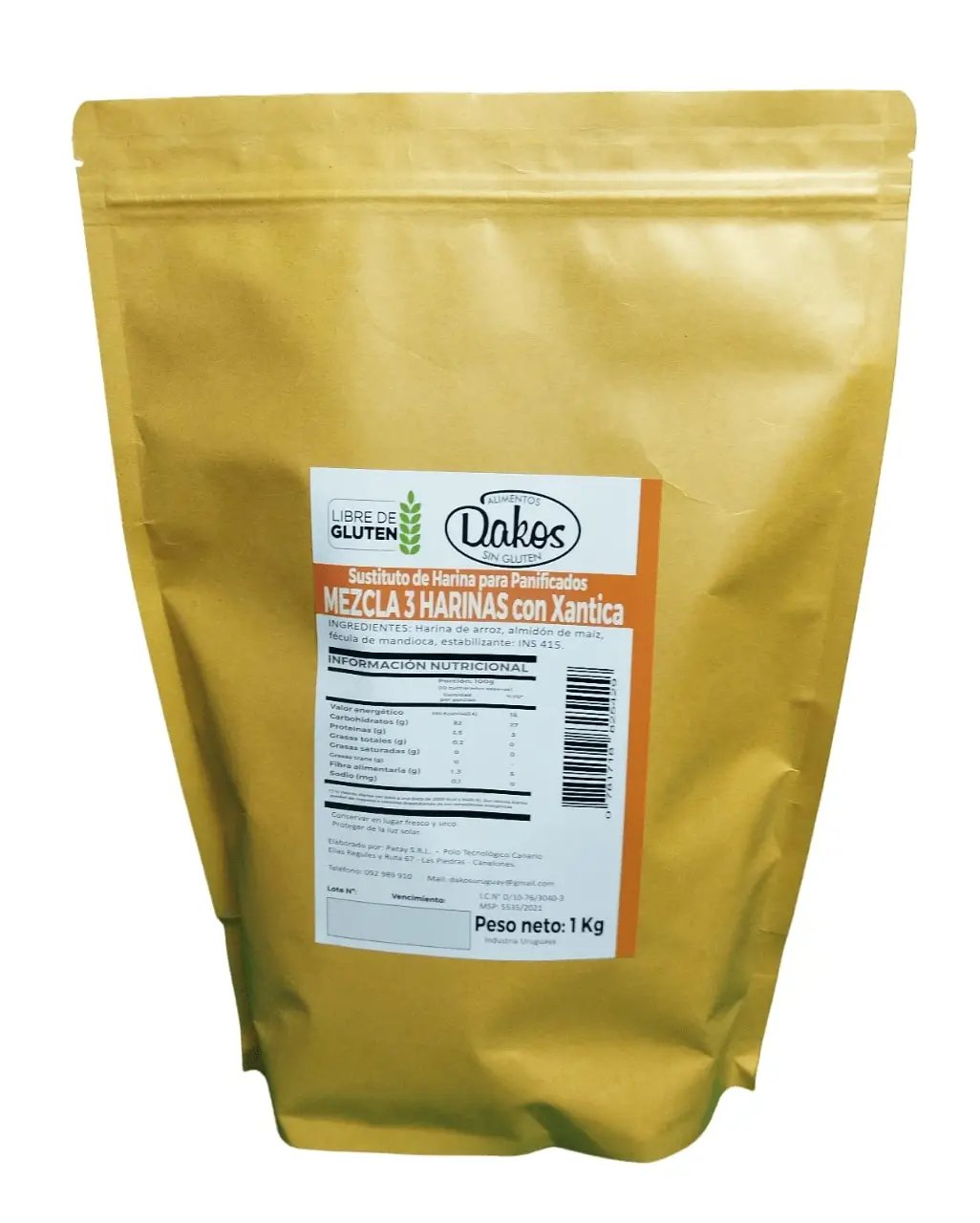 MEZCLA 3 HARINAS C/ XANTICA S/GLUTEN Dakos 1Kg